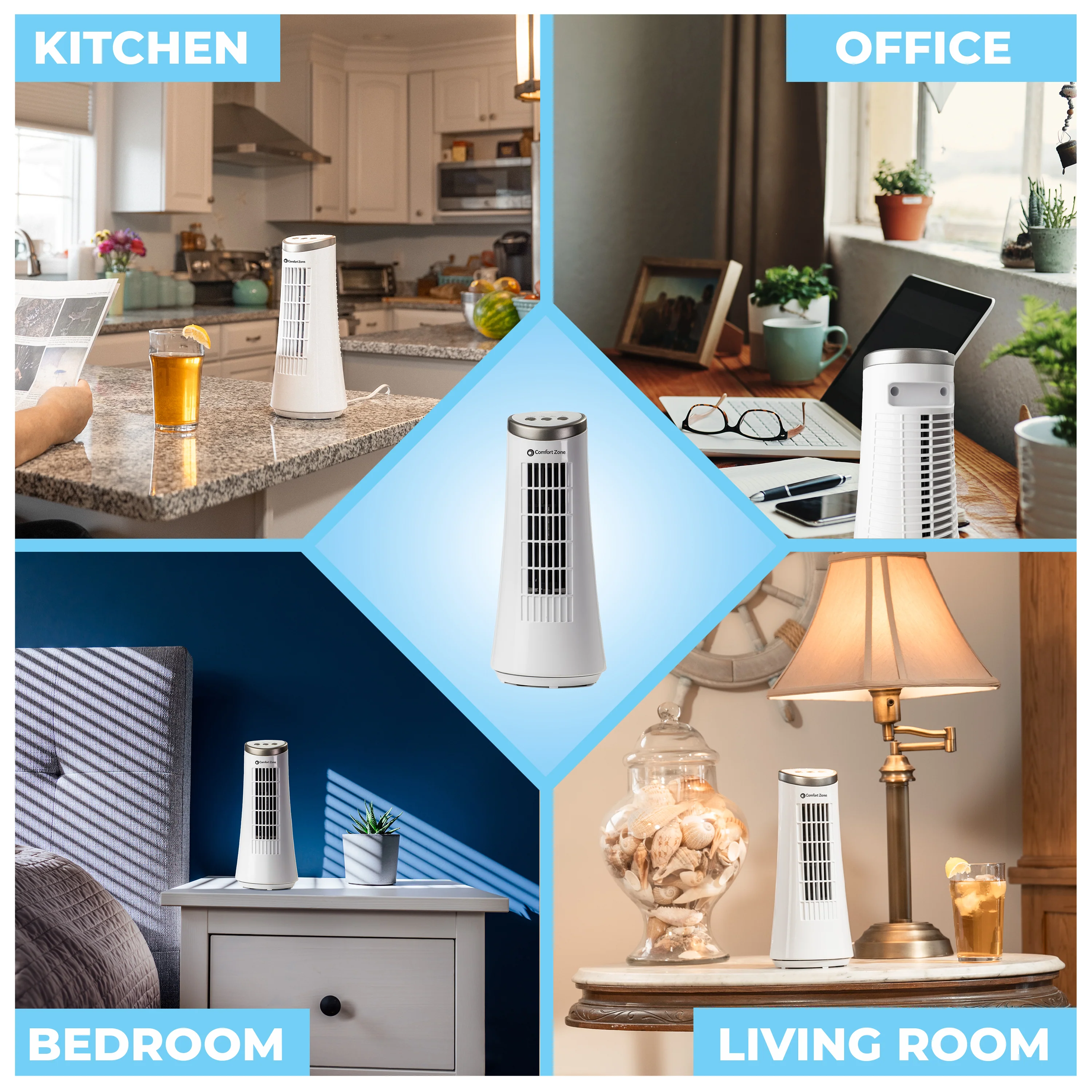 - Enjoy a refreshing breeze with this 12-inch Oscillating Desktop Tower Fan from Comfort Zone