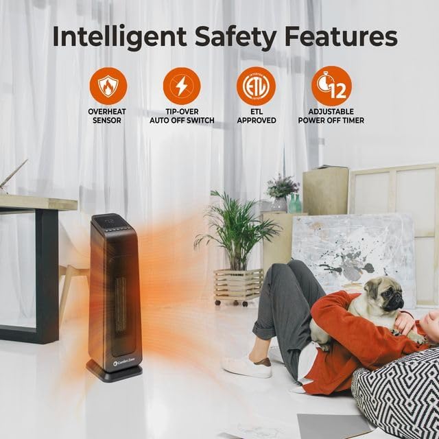 - Enjoy peace of mind with the overheat protection and safety tip-over switch features, which automatically shut off the heater if it reaches an unsafe temperature or is accidentally knocked over.