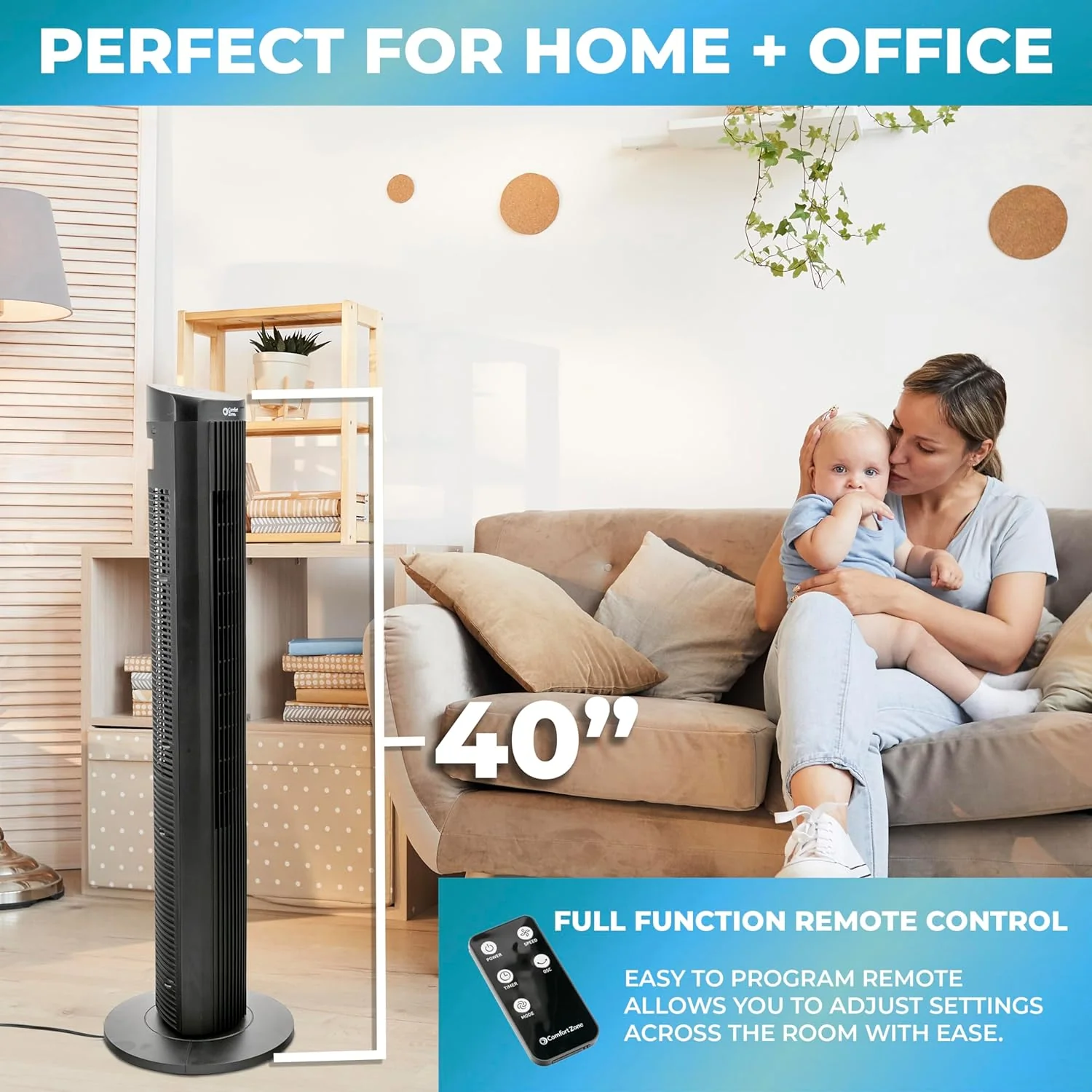 Comfort Zone 40" Oscillating Portable Tower Fan with Remote in Black