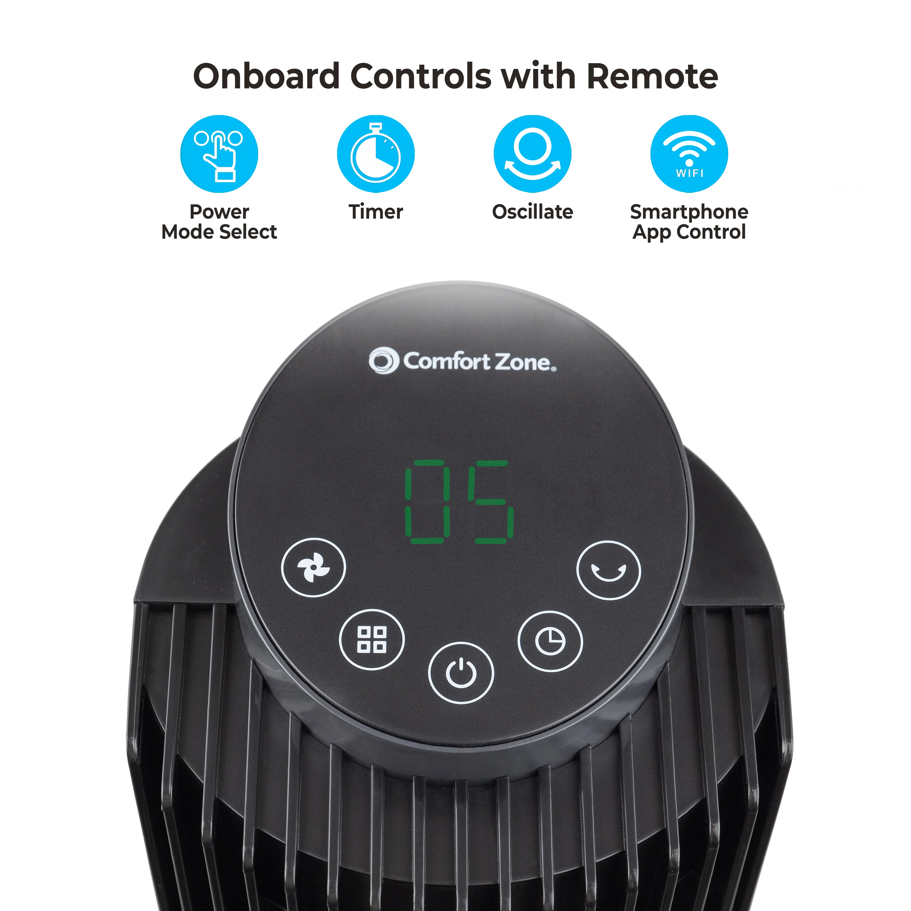- Take full control of your fan's settings with utmost convenience through the Comfort Zone smart app on your phone. Effortlessly adjust the fan speed, oscillation, and timer settings with just a few taps, bringing unparalleled comfort and customization to your fingertips.