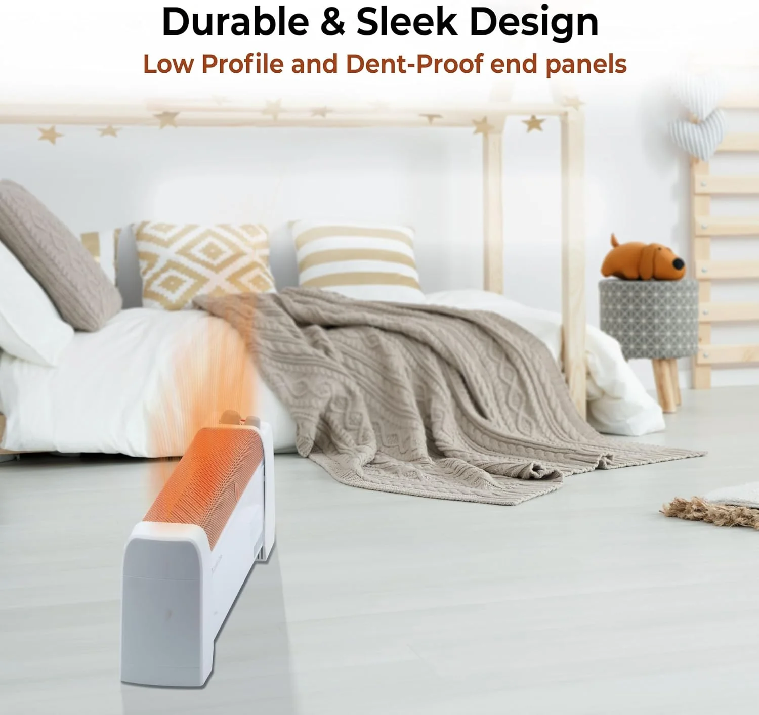 - This electric baseboard heater operates quietly, allowing you to enjoy your activities without any distracting background noise.